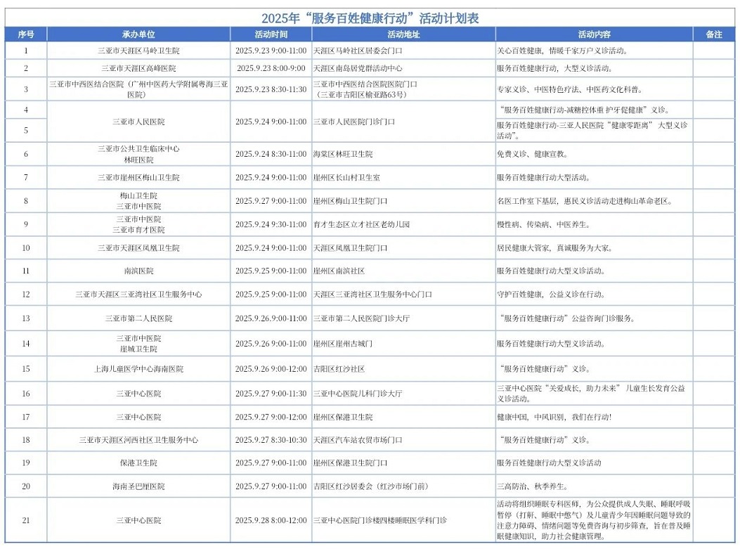 2025年“服务百姓健康行动”活动计划表