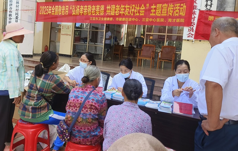 今年10月是全国第十六个“敬老月”。为贯彻落实积极应对人口老龄化国家战略,弘扬中华民族孝亲敬老传统美德,10月13日上午,三亚市卫生健康委联合市健康促进中心、三亚中心医院(海南省第三人民医院)、育才医院,在育才生态区雅林村委会举办2025年“敬老月”宣传活动,活动以“弘扬孝亲敬老美德共建老年友好社会”为主题,切实营造尊老、敬老、爱老的浓厚社会风尚。