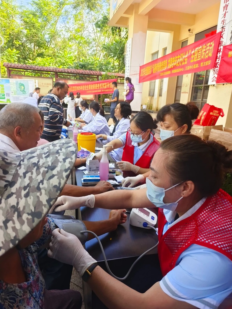 活动现场,医疗服务成为核心亮点。三亚中心医院组建了由老年病科、疼痛科、神经内科医生构成的义诊队伍,育才医院则同步派出体检队伍,共同为在场老年人提供“一站式”健康服务——不仅面对面解答健康疑问、开展免费义诊,还为老年人进行专业体检,精准对接老年群体的健康需求。