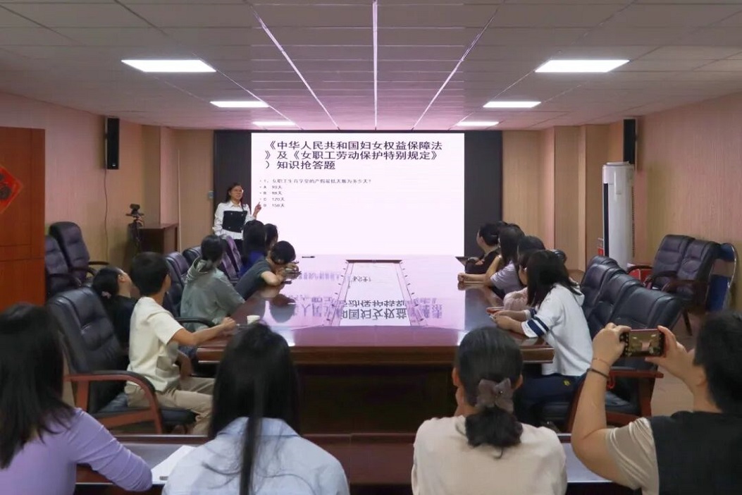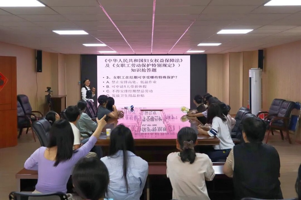 活动现场气氛热烈,设置授课宣讲与有奖问答两大环节,兼顾知识性与趣味性。授课环节中,工作人员用通俗易懂的语言解读《中华人民共和国妇女权益保障法》《女职工劳动保护特别规定》,引导女职工学法、懂法、守法、用法,筑牢自我保护的法律防线。有奖问答环节围绕普法知识与健康常识展开,职工们积极参与、踊跃抢答,在互动中增长法律知识,现场欢笑声与掌声不断。