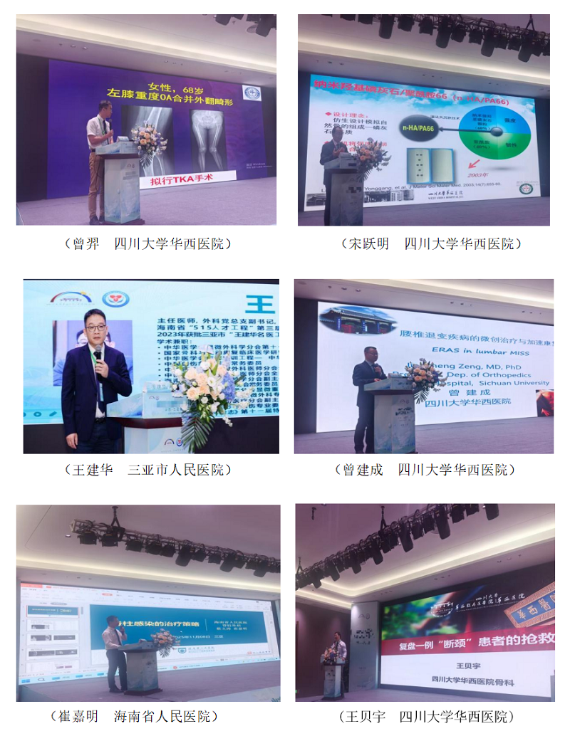 开幕式上,三亚市卫生健康委党委书记、主任胡玉蕾,三亚市人民医院党委书记宋彬、副院长李玻,项目负责人、四川大学华西医院骨科主任周宗科教授,海南省医学会骨科学分会主任委员王勇平以及大会主席、名医工作室领衔人王建华教授等共同出席并致辞。