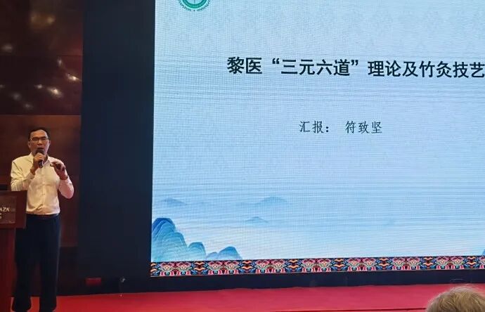 授课环节中,行业专家学者带来了丰富的学术成果与实践经验。广西国际壮医医院副院长谭俊以《壮医诊断理论发展的历史新阶段》为题,分享了壮医理论体系构建的实践经验,为黎医理论系统化发展提供了宝贵借鉴;三亚市中医院主任护士刘茂娟展示《非遗黎陶五行火罐技术的传承与创新》,生动呈现了黎族传统技艺与现代临床疗法的创新融合;海南省黎族医药协会会长符致坚深入解读黎医“三元六道”核心理论及竹灸特色技艺,让参会者直观感受黎医药的文化内涵与诊疗特色;琼中县黎族医药体验区负责人王奋分享了黎药治疗中风病的临证心得,为临床应用提供了实践参考;海南医科大学刘洪波副教授围绕黎医筋骨疾病的诊疗标准与实践规范发表见解,为黎医药标准化建设提供了学术支撑。