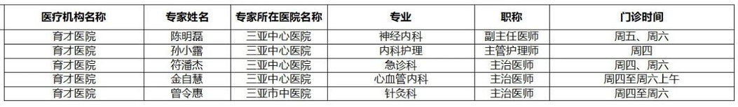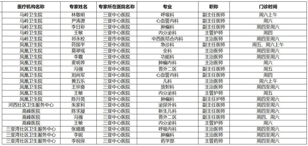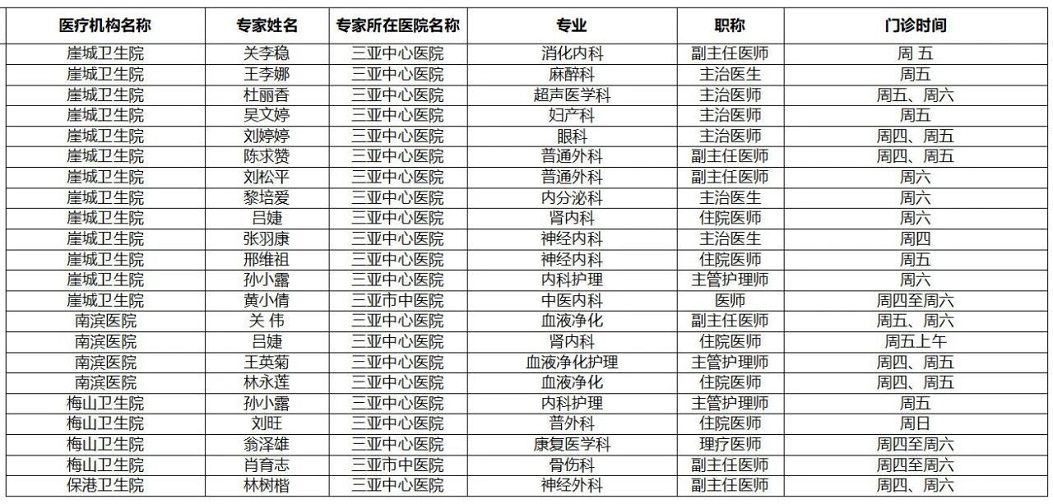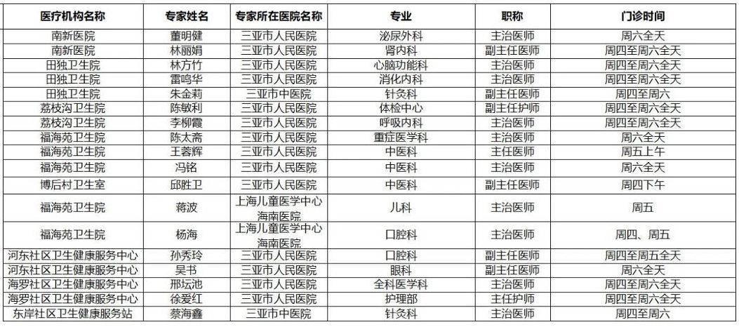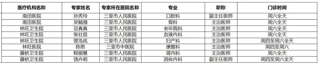 | 三亚市基层医疗卫生机构 专家门诊排班表(10月9日-10月11日) |