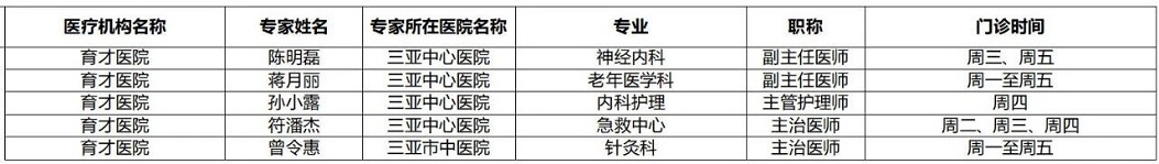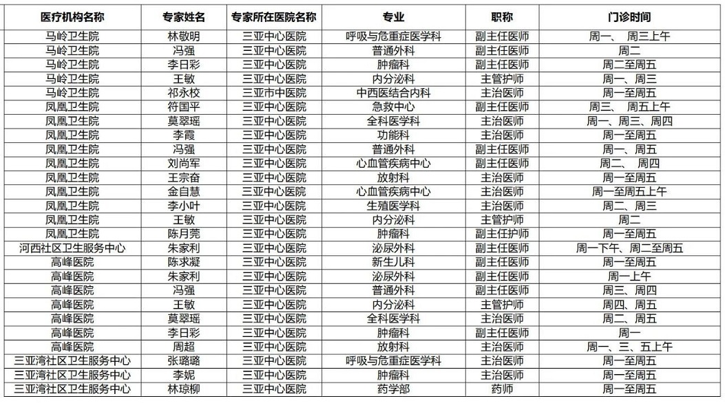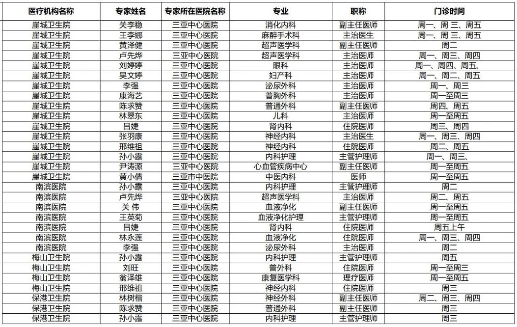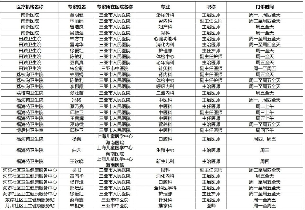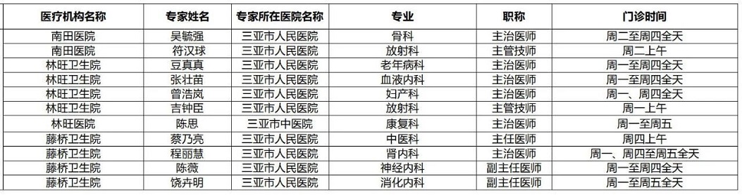 | 三亚市基层医疗卫生机构 专家门诊排班表(11月10日-11月16日) |