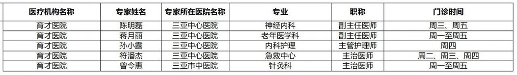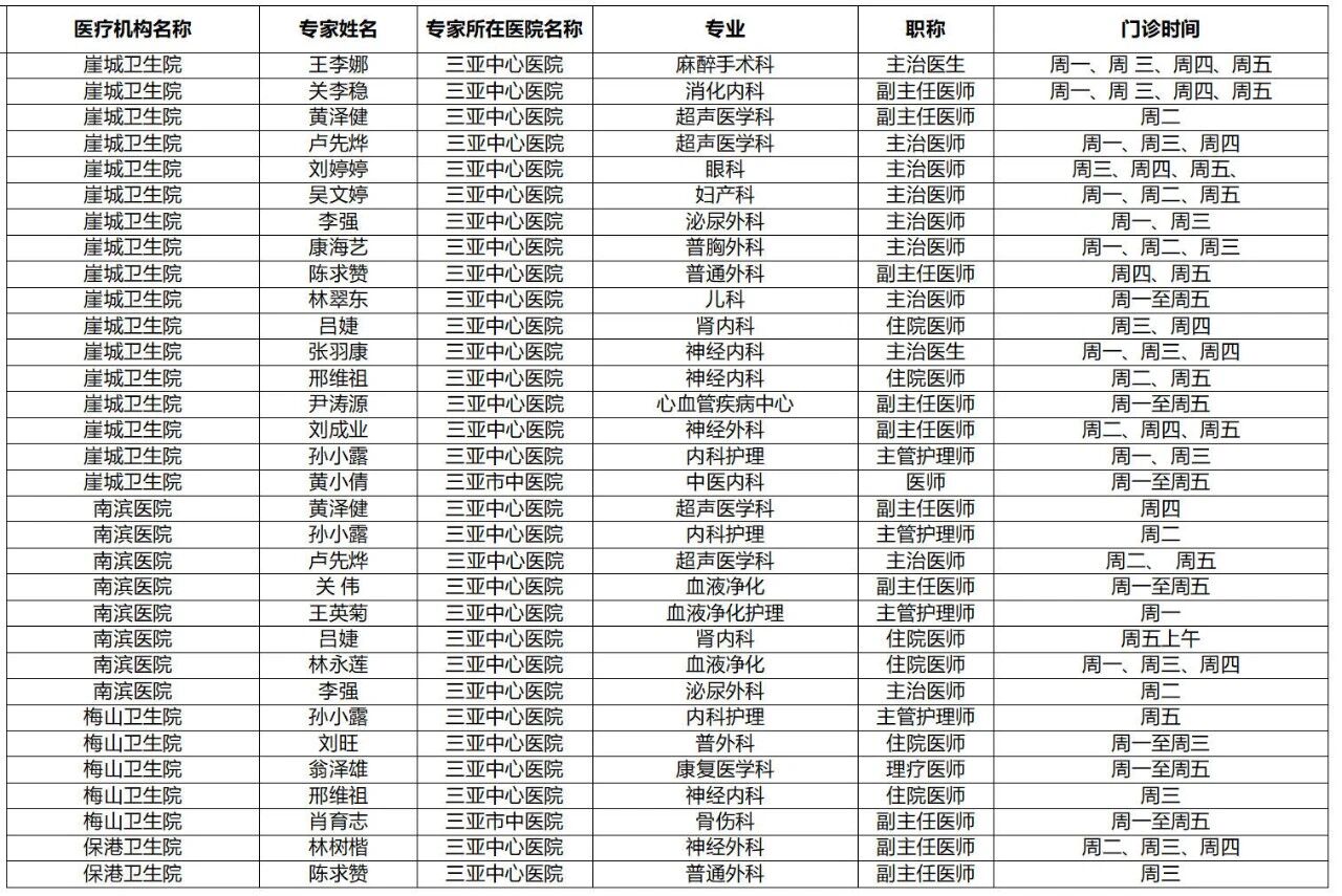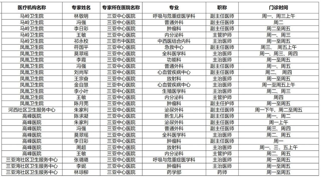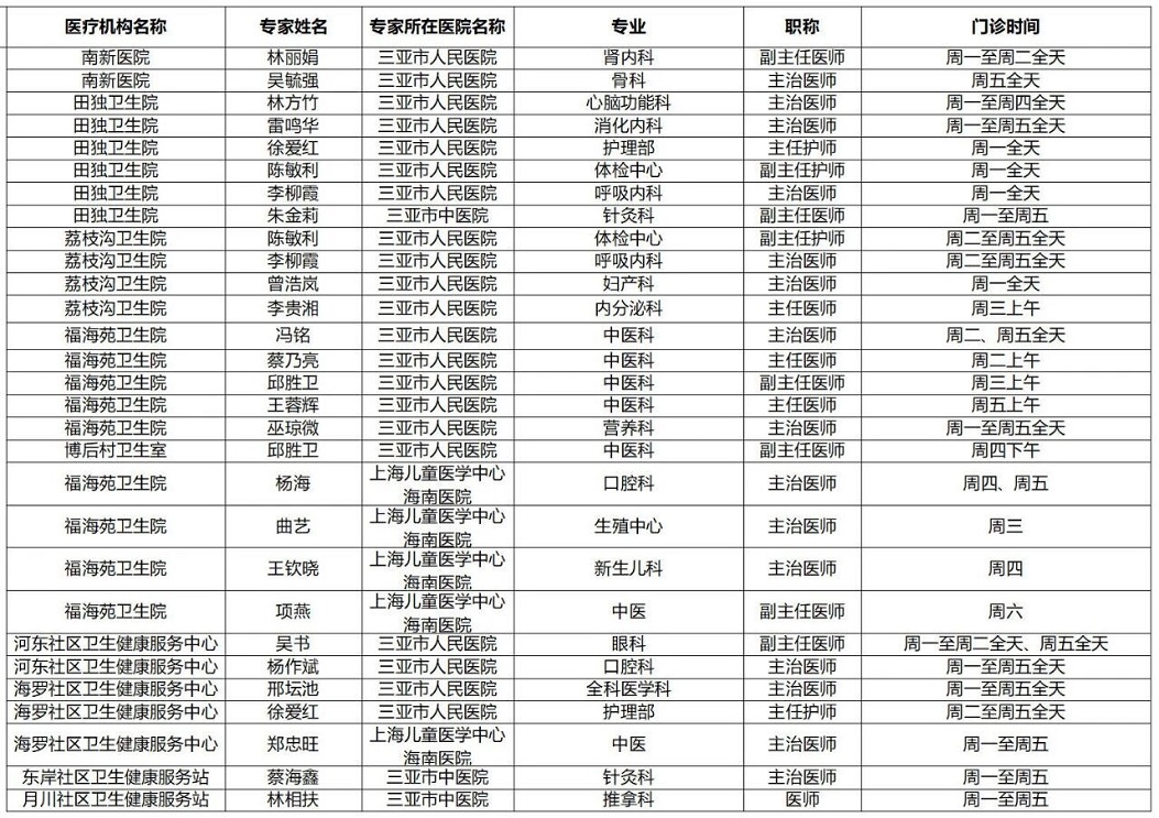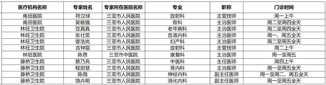 | 三亚市基层医疗卫生机构 专家门诊排班表(11月24日-11月30日) |