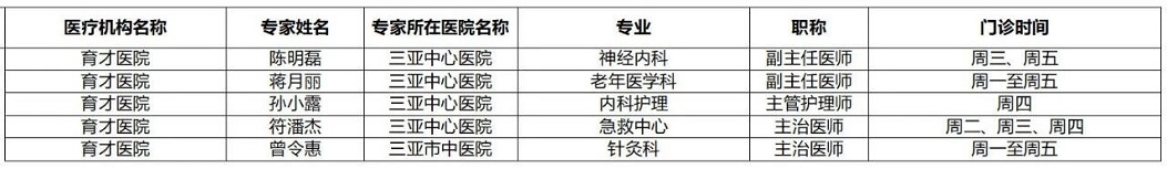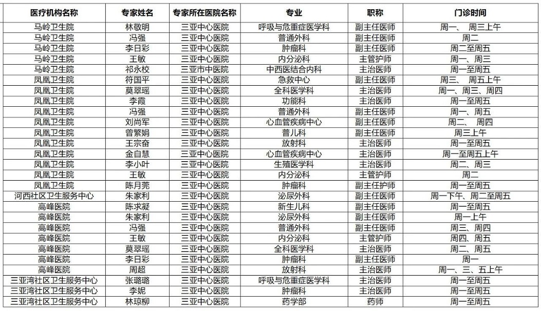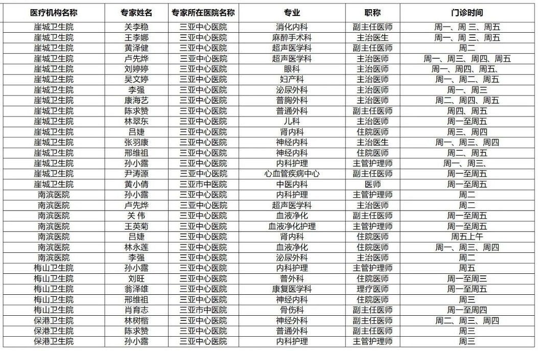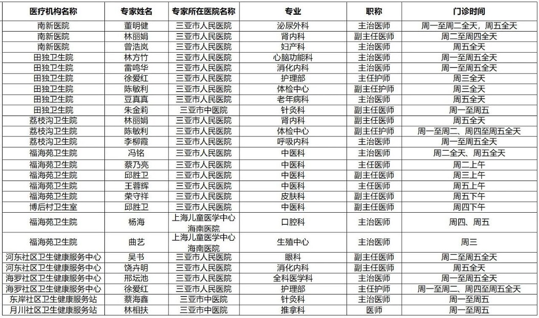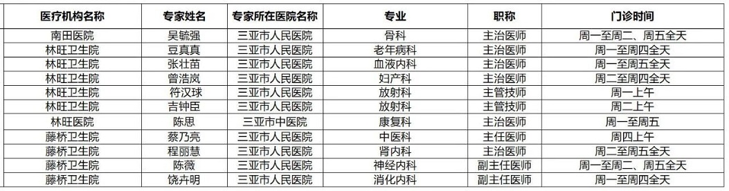 | 三亚市基层医疗卫生机构 专家门诊排班表(11月3日-11月9日) |