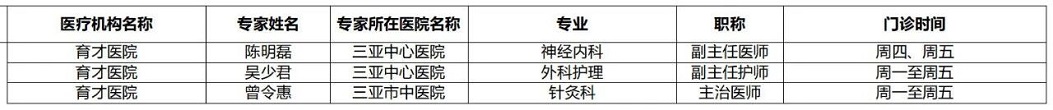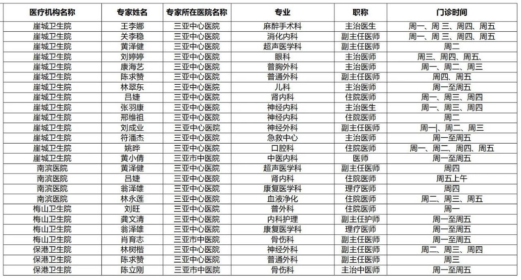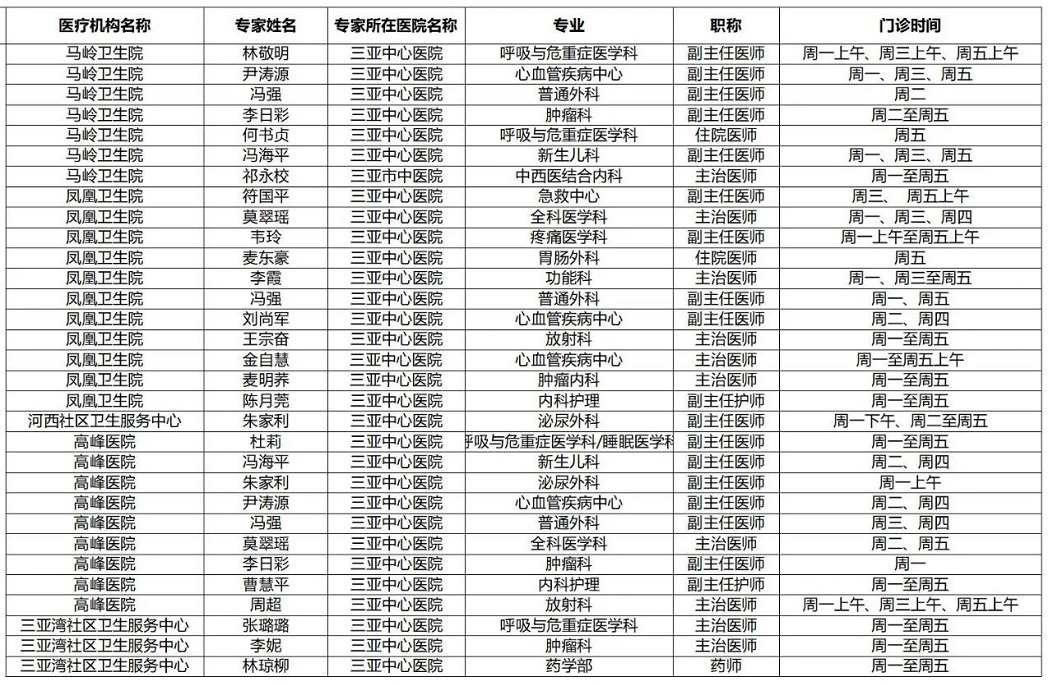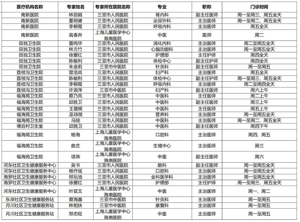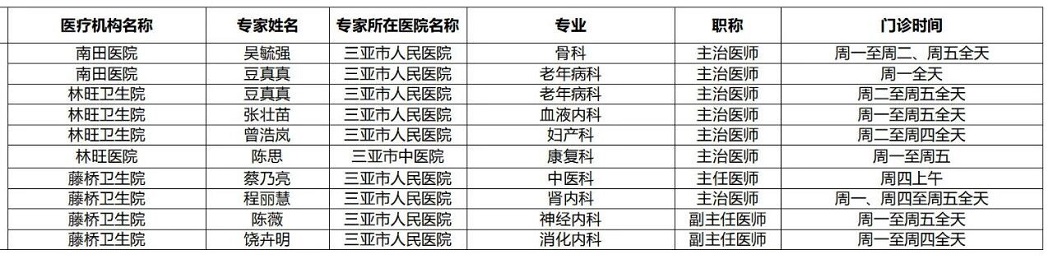 | 三亚市基层医疗卫生机构 专家门诊排班表(2月2日-2月8日) |