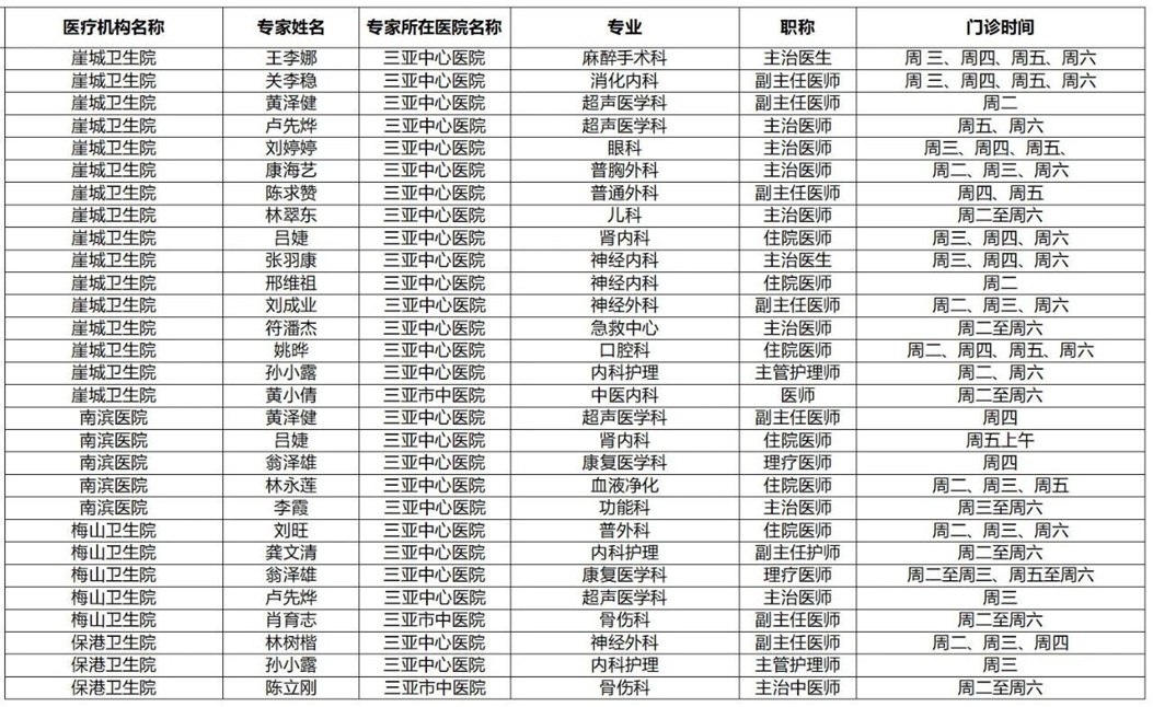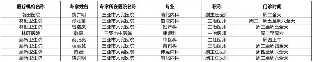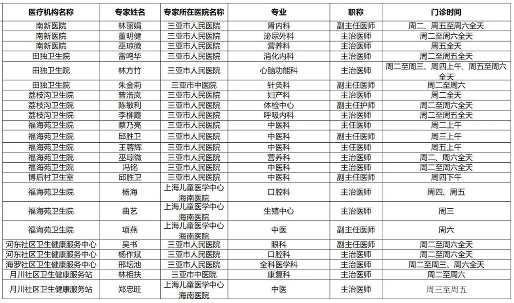 | 三亚市基层医疗卫生机构 专家门诊排班表(2月24日-2月28日) |