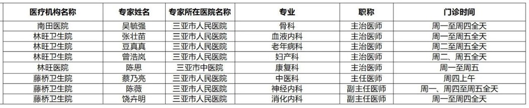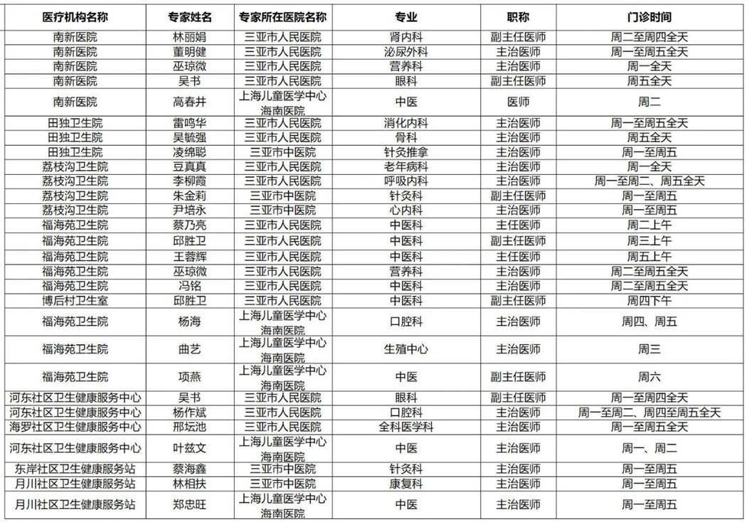 | 三亚市基层医疗卫生机构 专家门诊排班表(3月16日-3月22日) |
