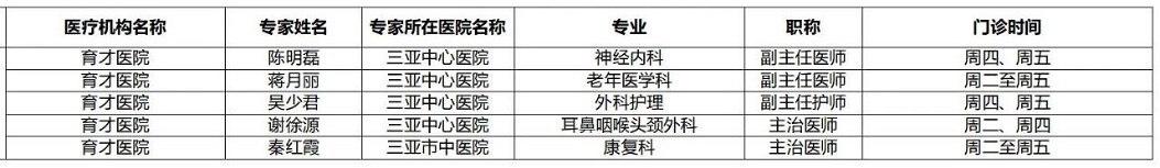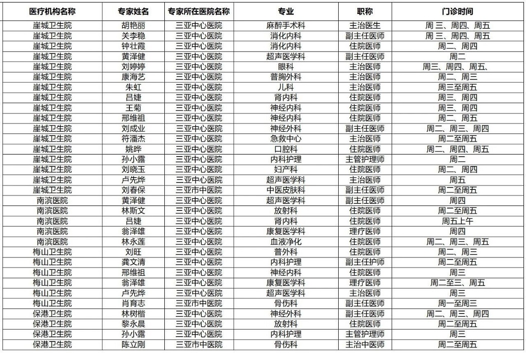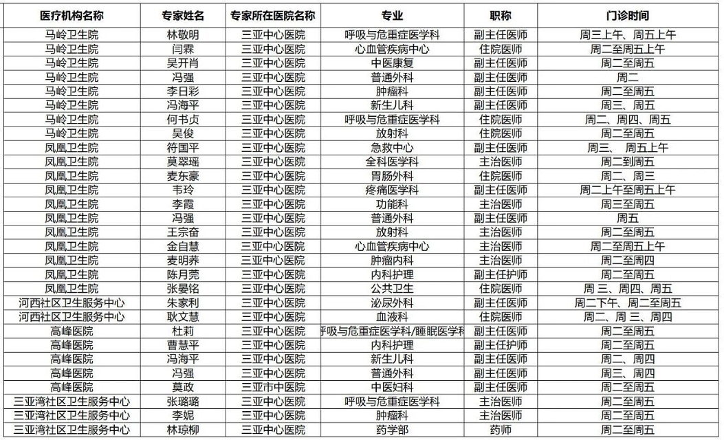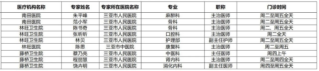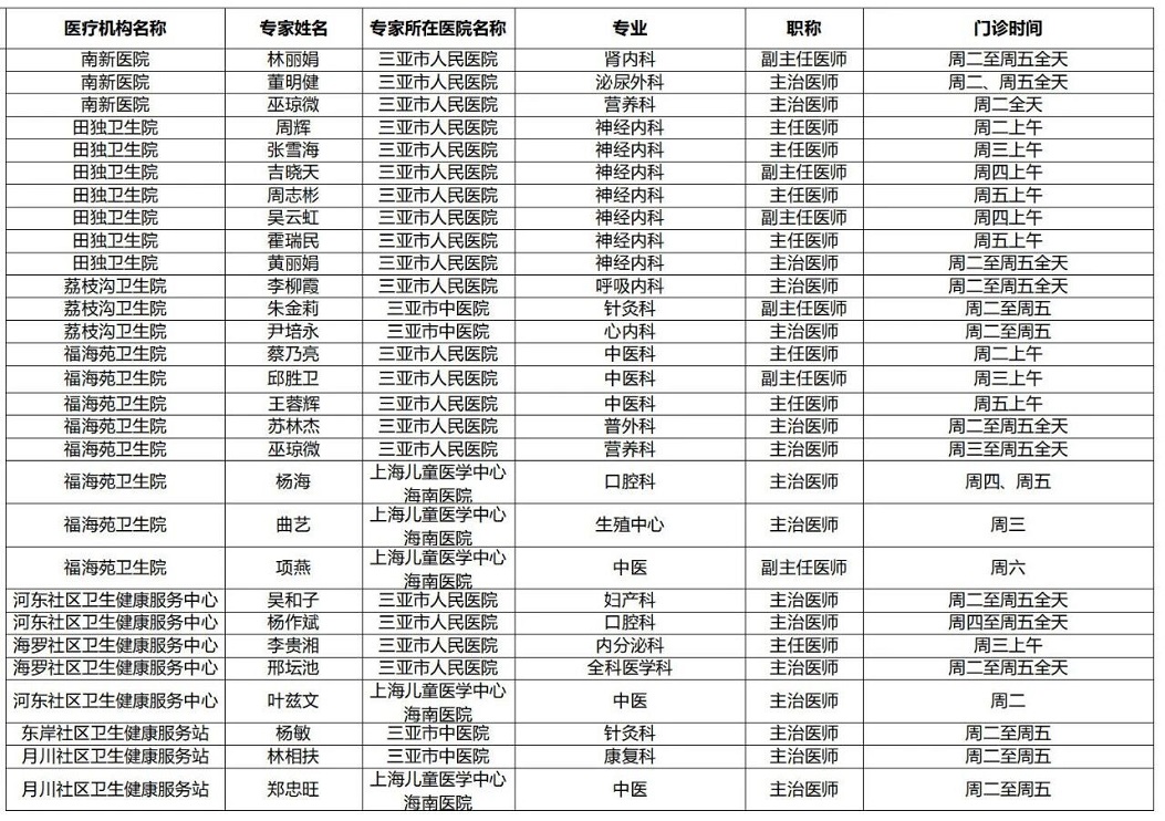 | 三亚市基层医疗卫生机构 专家门诊排班表(4月7日-4月12日 |