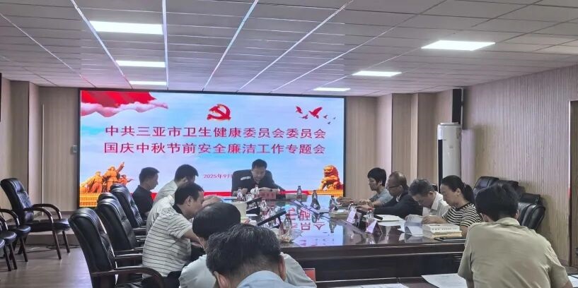 会议传达学习《关于持续强化正风肃纪确保中秋、国庆期间风清气正的通知》《三亚市防灾减灾救灾和安全生产委员会办公室关于加强中秋国庆期间安全防范工作的提示函》等文件精神。书面传达学习《中央纪委国家监委公开通报八起违反中央八项规定精神典型问题》《卫生健康系统违纪违法典型案例》等文件精神。